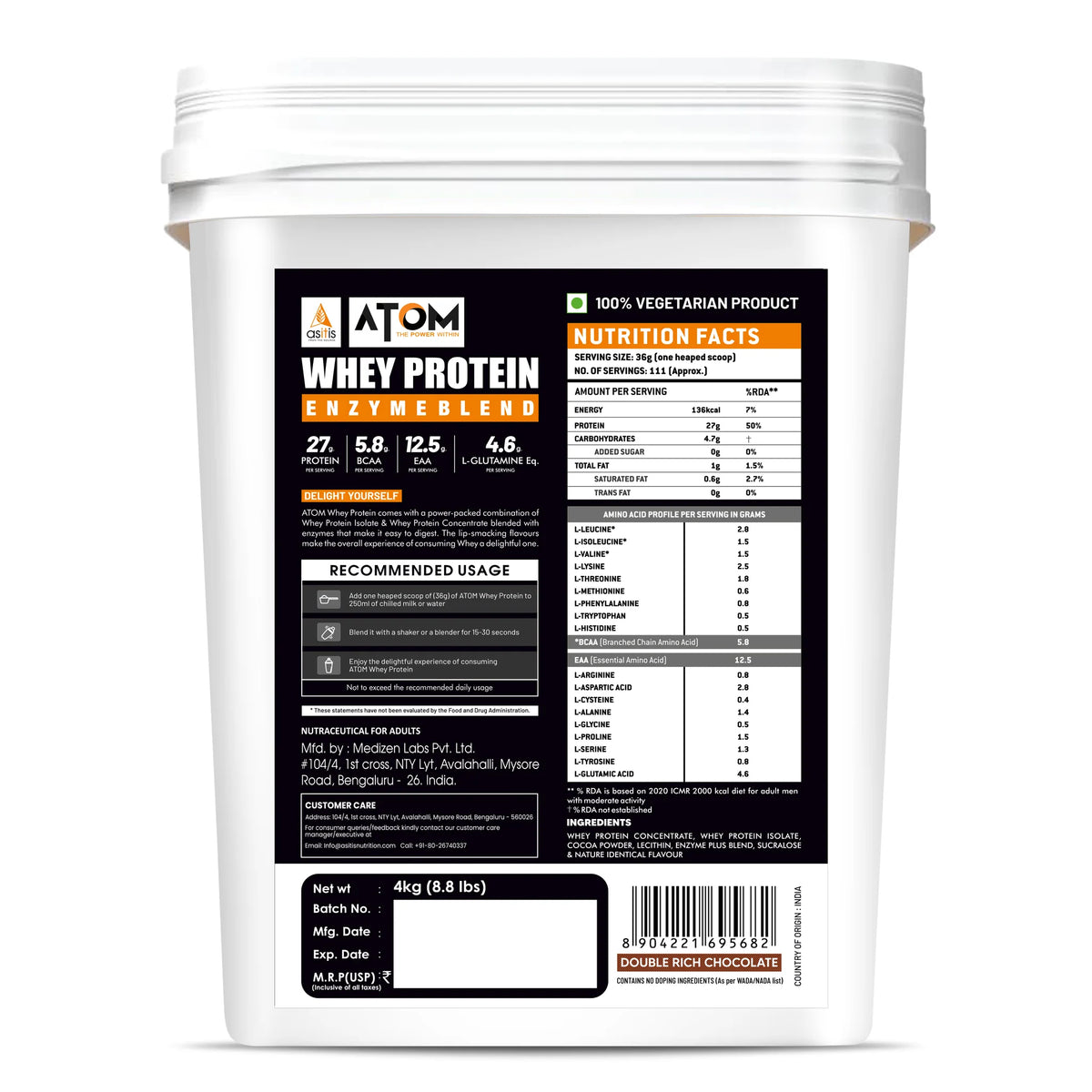 ATOM Whey Protein | USA Labdoor Certified For Accuracy & Purity - 1 KG / Chocolate